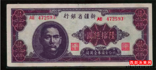 發(fā)行于1949年5月10日,由當(dāng)時(shí)中華民國(guó)國(guó)民政府的新疆省銀行發(fā)行。