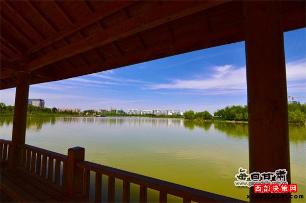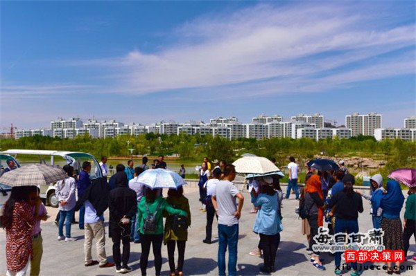 9月4日,“文博會網(wǎng)絡宣傳周”采訪團75家媒體近百名記者一行走進蘭州新區(qū)時,就被碧波蕩漾的2號湖濱區(qū)所吸引,湖邊盛開著紅的、黃的、紫的鮮花,湖里隱約可見各種彩色的錦鯉,游人或愜意地在湖邊垂釣,或聚集在觀景臺欣賞音樂噴泉,或悠然自得地泛舟湖上。