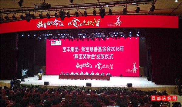昨天上午,寶豐集團·燕寶慈善基金會2016年“燕寶獎學金”發(fā)放儀式在寧夏銀川市舉行。捐贈儀式上,寶豐集團·寧夏燕寶慈善基金會獎勵9.2萬名學子,發(fā)放獎學金2.64億元,新增受助學生2.6萬人。