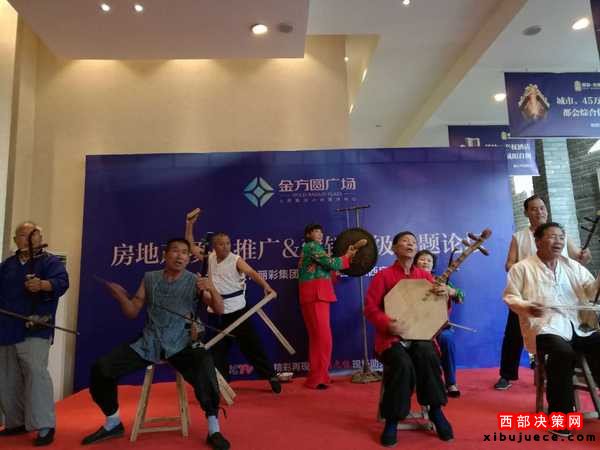 由陜西麗彩實(shí)業(yè)集團(tuán)、陜西漢水廣告文化傳媒有限公司、《陜西房產(chǎn)》共同主辦的“房地產(chǎn)項(xiàng)目推廣與營銷升級主題論壇”,于2016年9月8日下午在咸陽金方圓廣場項(xiàng)目營銷中心圓滿舉辦。論壇第一輪嘉賓對話結(jié)束后,主辦單位邀請了華陰老腔藝術(shù)團(tuán)成員、華陰籍姑娘屈玄登臺獻(xiàn)歌。(見下圖)