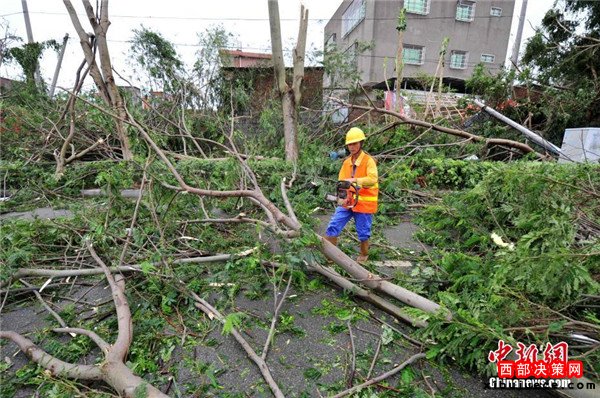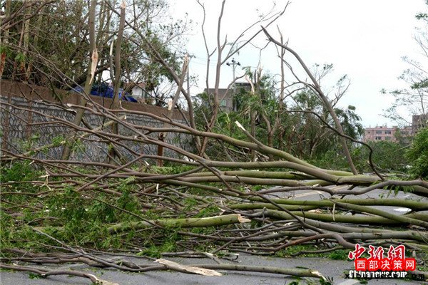 9月15日,今年第14號臺風(fēng)“莫蘭蒂”于凌晨3時05分在廈門翔安沿海登陸,登陸時中心附近最大風(fēng)力15級(48米/秒,強臺風(fēng)級),中心氣壓945百帕。圖為廈門市區(qū)路上大批車輛被吹倒的樹木損壞。