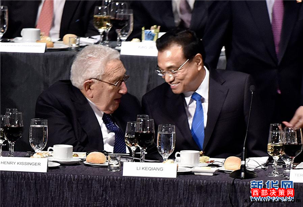 李克強表示,基辛格博士45年前訪華時,中美貿易幾乎為零。45年后的今天,中美貿易額占全世界貿易總量的五分之一,中美經濟總量之和占世界經濟總量的三分之一。我們的貿易和投資量如此之大,自然難免有分歧摩擦,但我們之間的共同利益遠大于誤解和分歧。我們正在進行的雙邊投資協定談判就是向兩國工商界發(fā)出中美進一步擴大相互開放和投資的積極信號。希望美方采取務實靈活態(tài)度,與中方共同努力達成高水平、互利共贏的雙邊投資協定。兩國可以通過更多貿易與人員往來,坦誠溝通,增進理解與互信,推動中美關系朝著穩(wěn)定向好的方向繼續(xù)前行。
