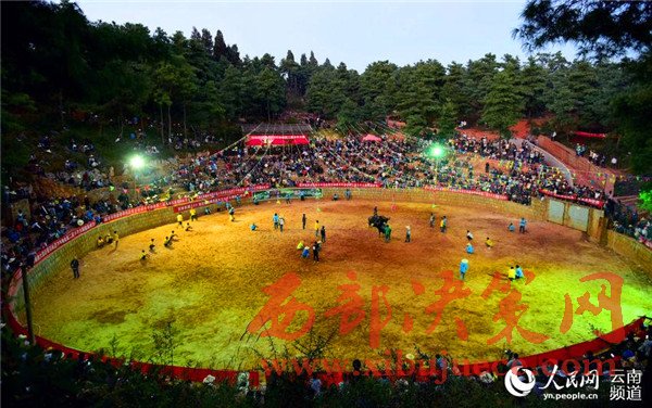 云南石林:60余頭斗牛爭奪"牛王"喜迎縣慶60周年