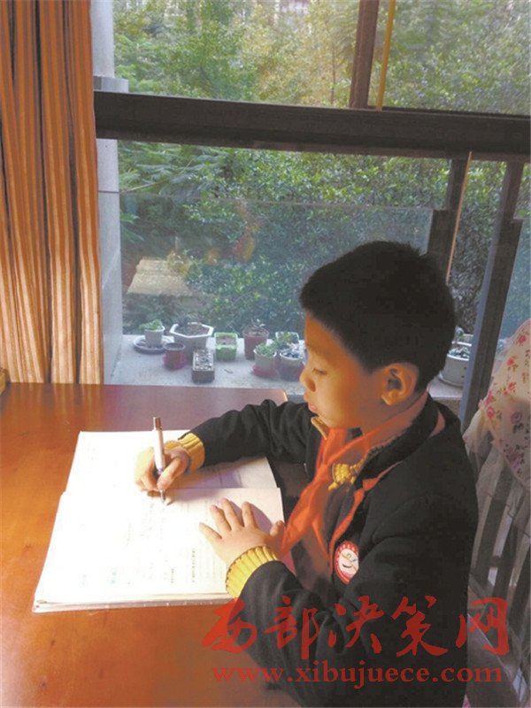 由于愛鉆難題,羅弋常常忽略細(xì)節(jié)和基礎(chǔ),他曾忘記寫數(shù)學(xué)單位、轉(zhuǎn)化單位,甚至做漏題。而最令媽媽頭痛的是,兒子不愛做作業(yè),“我不喜歡做累手的事情,我寫字很慢,喜歡用幾個(gè)符號(hào)就把我的想法表達(dá)。”羅弋說。這學(xué)期,陳群要求羅弋在做完家務(wù)、照顧好弟弟以后,利用2小時(shí)時(shí)間做作業(yè),“到了9點(diǎn)半必須擱筆,去睡覺。”情況才有所好轉(zhuǎn)。