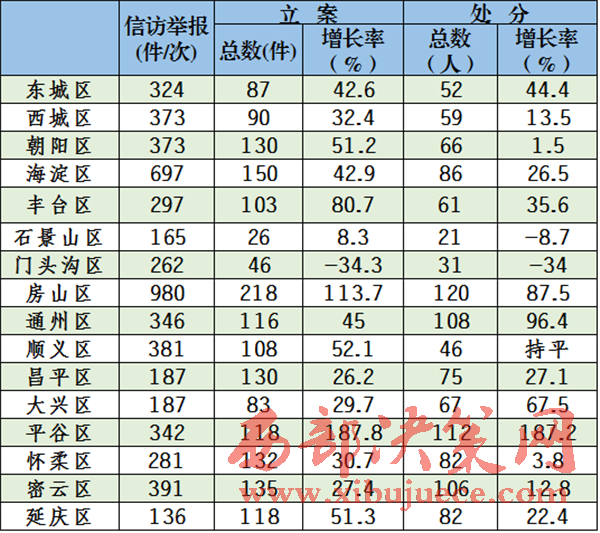 11月18日電據(jù)中央紀委監(jiān)察部網(wǎng)站消息,2016年1至10月北京市各級紀檢監(jiān)察機關共接受紀內信訪舉報12182件(次),立案2388件。給予黨紀政紀處分1720人,其中,廳局級32人,縣處級366人,鄉(xiāng)科級345人。移送司法73人。查處違反中央八項規(guī)定精神和市委實施意見364人,“小官貪腐”328人。
