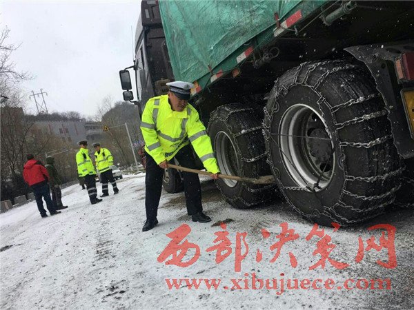 21日夜間,20余輛半掛車進山,行至冰雪路面無法前行,滯留在路邊,導致道路擁堵。為進一步加強路面管控,渭濱大隊迅速啟動《冰、雪、雨、霧自然災害等特殊氣候條件下道路交通安全保障應急處置預案》,從22日早上7點開始,對四軸以上半掛車進行交通管制。同時,渭濱交警大隊,鳳縣交警大隊黃牛埔中隊迅速聯(lián)系路政部門,對積雪路段采取拋灑融雪劑、防滑沙等措施。對部分滯留車輛大隊民警已第一時間趕赴現(xiàn)場進行疏導,并送去了熱水和食品,并從秦嶺兩端。
