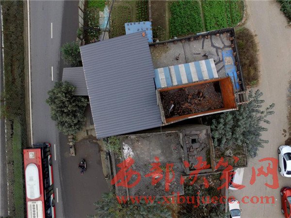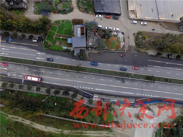 這棟房子屋前的院壩、自留地占據(jù)了進(jìn)方向的兩條車道。2008年擴(kuò)建這條路之前,這棟民房就已經(jīng)立在這里,至今已有8年時間。