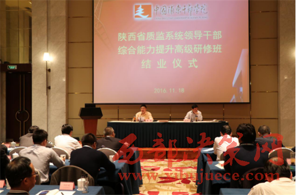 西部決策網(wǎng)訊11月14日至18日,陜西省質(zhì)監(jiān)系統(tǒng)領(lǐng)導干部綜合能力提升高級研修班在中國浦東干部學院成功舉辦。共有來自陜西省質(zhì)監(jiān)局機關(guān)各處室、直屬各單位和各市級、府谷縣、神木縣局共40名領(lǐng)導干部參加了培訓學習。此次為期5天的研修班,著眼于提升陜西省質(zhì)監(jiān)系統(tǒng)干部的綜合素質(zhì)和領(lǐng)導能力,為實現(xiàn)質(zhì)監(jiān)部門服務(wù)大局能力水平的新提升和服務(wù)發(fā)展效果的新提升提供更加堅強的思想政治和組織保證。陜西省質(zhì)監(jiān)局黨組書記、局長喬軍出席結(jié)業(yè)儀式并發(fā)表重要講話。省局黨組成員、副局長李晉利出席開班儀式作動員講話,并全程參加培訓學習。