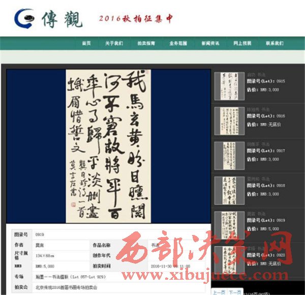 莫言書法作品亮相“瀚墨——書法楹聯(lián)”專場(chǎng)。拍賣公司官網(wǎng)截圖