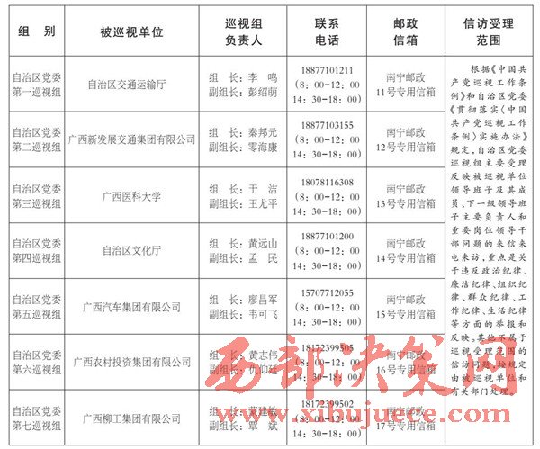 本輪巡視從12月初開始至2017年1月20日結束,自治區(qū)黨委7個巡視組將采取“一對一”方式對2個自治區(qū)政府工作部門、1所高校和4家自治區(qū)管理國有企業(yè)開展專項巡視。