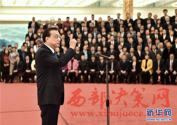 12月5日,中共中央政治局常委、國務(wù)院總理李克強(qiáng)在北京會見全國先進(jìn)個體工商戶代表,與他們合影留念并作重要講話。