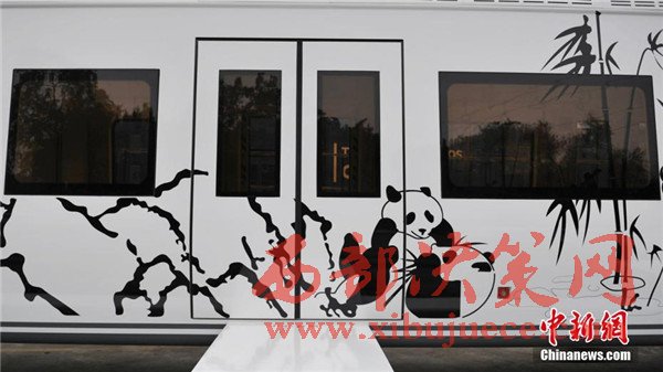 記者在現(xiàn)場看到,正式下線的空鐵車身為卡通熊貓山水圖案,酷似“熊貓”,每列定員144人,時(shí)速最高可達(dá)65公里。列車采用“大容量動(dòng)力蓄電池充放電控制技術(shù)”,通過實(shí)現(xiàn)高倍率放電,提高列車起動(dòng)加速性能及對(duì)極限環(huán)境的適應(yīng)性,同時(shí)能將400千瓦的電制動(dòng)功率全部用于動(dòng)力電池快速充電,實(shí)現(xiàn)制動(dòng)能量回收再利用,延長蓄電池續(xù)航里程達(dá)120千米。圖為車身外繪制有熊貓山水圖案。