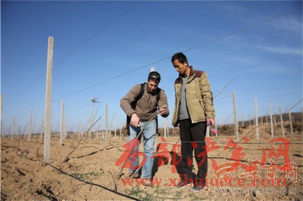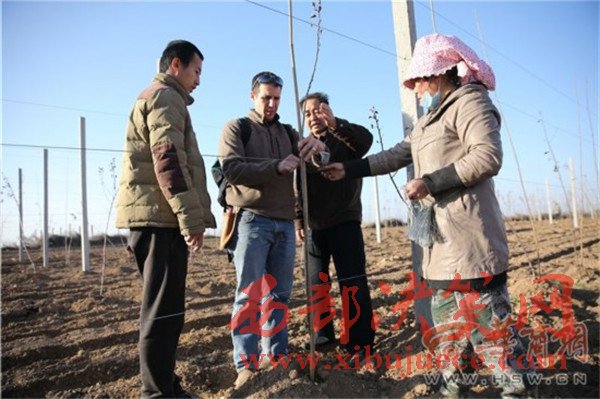 12月8日上午8時(shí)30分,淳化縣卜家鎮(zhèn)蔣家山村,當(dāng)?shù)毓r(nóng)剛吃完早飯,林東已從100多公里外的西安趕到這里,他一邊用熟練的中文問大家“咥飽了沒有”,一邊從背包里掏出果樹剪刀,走進(jìn)地里查看樹苗的過冬情況。果園的技術(shù)員拿個(gè)大本子跟在林東后邊做記錄,遇到難點(diǎn)林東就親自示范。
