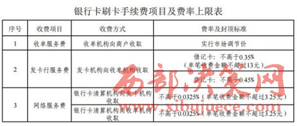 銀行卡刷卡手續(xù)費(fèi)項(xiàng)目及費(fèi)率上限表。來(lái)自發(fā)改委網(wǎng)站。