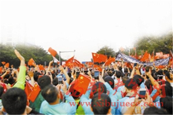 深馬參賽者揮舞國(guó)旗。