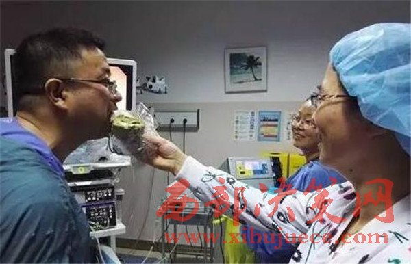 一般來說,內(nèi)鏡手術(shù)耗時(shí)不會(huì)超過兩小時(shí),而這臺(tái)手術(shù)竟史無(wú)前例地長(zhǎng)達(dá)9小時(shí)。內(nèi)鏡手術(shù)不像外科手術(shù),可以輪班,而是由一位醫(yī)生從頭做到尾,辛苦可想而知。