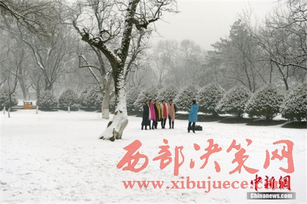延安喜迎降雪 光禿禿的樹枝綴滿了潔白的"梨花"