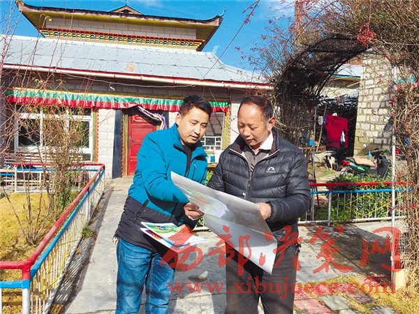 圖為林芝市統(tǒng)計(jì)局工作人員洛桑(左)向八一鎮(zhèn)巴吉村村民布珠宣講農(nóng)業(yè)普查相關(guān)知識。