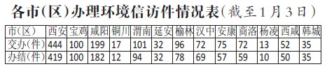 記者從我省環(huán)境保護(hù)督察巡查工作領(lǐng)導(dǎo)小組辦公室了解到,截至2017年1月3日,中央第六環(huán)境保護(hù)督察組共轉(zhuǎn)交我省環(huán)境信訪問題1309件。截至1月3日18時,全省按辦理期限已經(jīng)辦結(jié)并公布1198件,辦結(jié)率91.5%。其中寶雞、延安、韓城市已經(jīng)全部辦結(jié)。