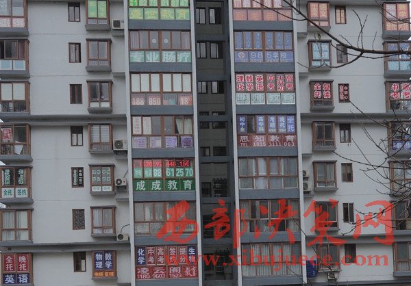 不過,自搬進(jìn)來的第一天起,她感覺置身商業(yè)圈。樓道里,到處都是補(bǔ)習(xí)班的招生廣告。最令彭女士頭痛的是,學(xué)生最多的暑假,一天有五六次被敲門。