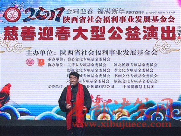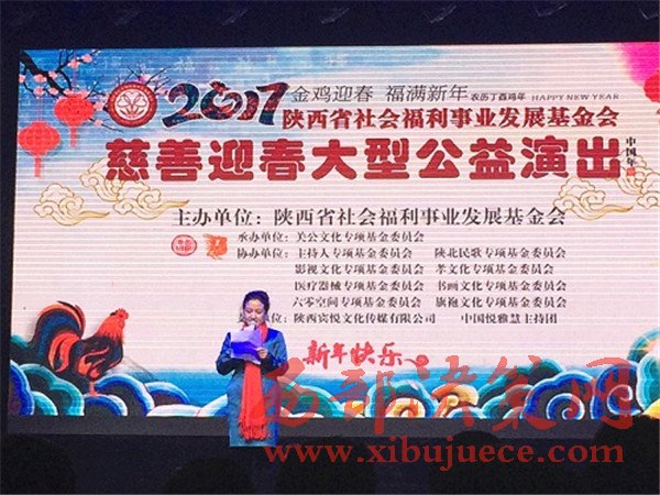 1月18日晚,由陜西省社會福利事業(yè)發(fā)展基金會主辦、關(guān)公文化專項(xiàng)基金委員會承辦、主持人專項(xiàng)基金委員會、陜北民歌專項(xiàng)基金委員會等協(xié)辦、陜西省民政廳指導(dǎo)的《慈善迎春》大型公益演出在蓮湖區(qū)絲路藝術(shù)劇院成功舉辦。