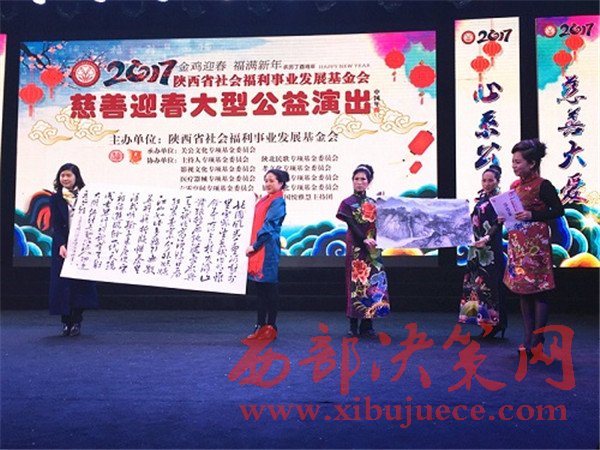晚會上不僅有流連忘返的歌舞表演,同時眾多書畫大家也在晚會現(xiàn)場一一亮相。其中,中國著名書法家林中陽先生還捐贈了巨幅作品兩幅,助力本場晚會。此外,陜西宏源床上用品有限公司總經(jīng)理周星雷向本次晚會現(xiàn)場捐助人民幣10000元,以表達(dá)企業(yè)對慈善公益事業(yè)所盡的一份綿薄之力。