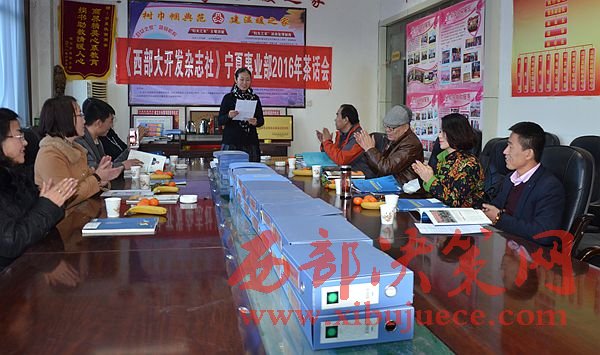 西部決策網訊 1月20日下午,西部大開發(fā)雜志社寧夏事業(yè)部2016年年終茶話會在銀川舉行。來自銀川電視臺、書法協(xié)會、演出協(xié)會等單位的代表們與本社寧夏事業(yè)部的工作人員匯聚一堂,為西部大開發(fā)雜志社寧夏事業(yè)部的發(fā)展建言獻策。