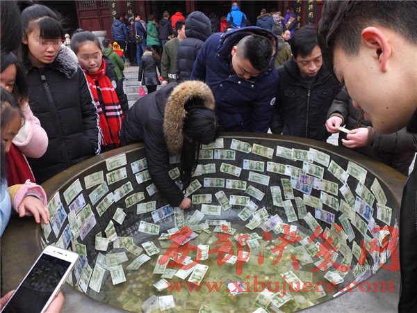 香客貼錢祈福 寺廟銅缸變“聚寶盆”