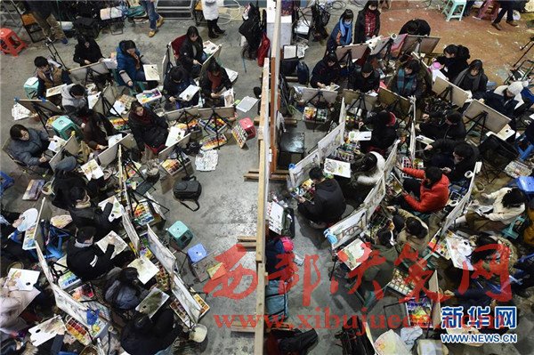 2月7日,考生在中國美術學院的杭州考點參加圖像與媒體藝術類的色彩科目考試。當日,為期4天的中國美術學院2017年本科專業(yè)招生考試在杭州、鄭州、成都、深圳、沈陽等5座城市的考點開考。據(jù)了解,今年報考中國美術學院的考生有約6.5萬人,計劃錄取本科生1588名,錄取比例超過40∶1。