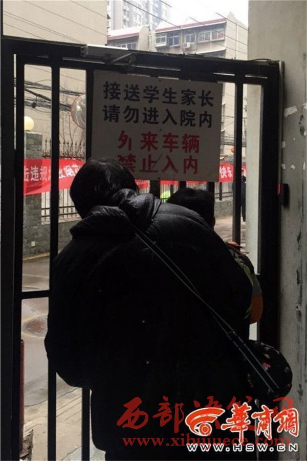 2月7日上午10時許,西安市友誼西路自在廣場小區(qū)內,一位送孩子上補習班的家長被擋在門外。小區(qū)門衛(wèi)要求讓補習班老師親自下樓來接。