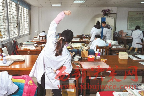 古籍修復(fù)工作現(xiàn)在仍是冷門行業(yè),修復(fù)師們頭上頂著“大國工匠”的光環(huán),背后卻有很多的艱辛。古書拆裝過程中會遇到大量陳年的灰塵、蟲卵等,打噴嚏、犯鼻炎、過敏等現(xiàn)象時有發(fā)生;保持伏案姿勢一整天,幾乎所有的修復(fù)師都有頸椎和腰椎疾病。而古籍修復(fù)從業(yè)人員的待遇并不高,對年輕人缺乏吸引力。每年會有許多實習(xí)生來到中心實習(xí),但實習(xí)結(jié)束,不少學(xué)生就離開這個行業(yè),能夠留下來的,寥寥無幾,更多人把它當(dāng)作副業(yè)或者興趣愛好。