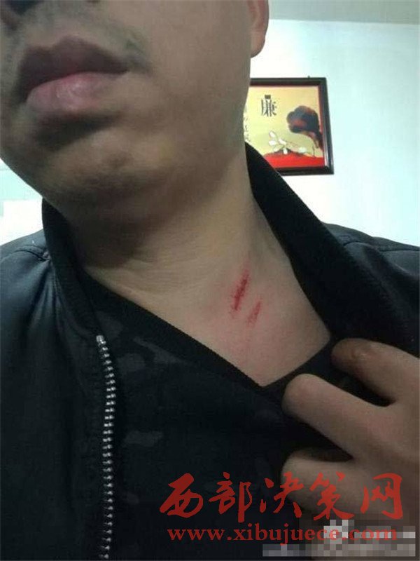 胡震稱(chēng)雙方發(fā)生沖突,混亂中他的脖子被打傷。 胡震微博@臻善大乘