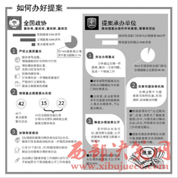 “提案凝聚著廣大政協(xié)委員的智慧心血,反映了社會各界群眾的愿望期待,辦理政協(xié)提案是吸納民意、汲取民智、接受人民監(jiān)督的重要途徑。”在日前舉行的全國政協(xié)提案工作情況通氣會上,國家發(fā)展改革委辦公廳副主任黃勇表示,政協(xié)委員通過提案對重大問題積極建言獻策,提出很多富有建設(shè)性的建議,為更加科學(xué)地編制規(guī)劃、制定政策、推進改革提供了新思路、新觀點。