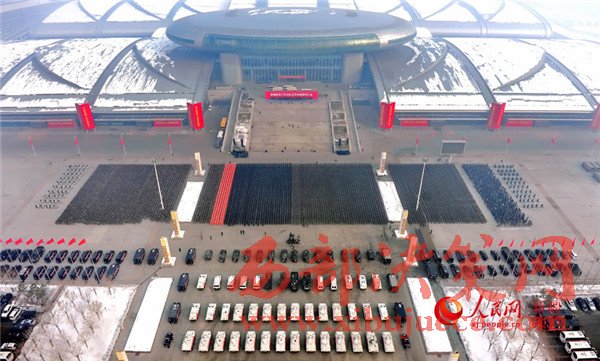 自治區(qū)反恐維穩(wěn)誓師大會現(xiàn)場。