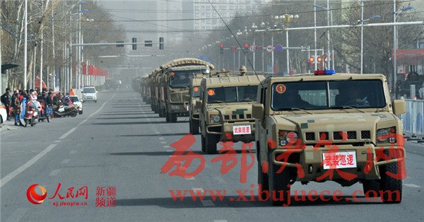 隨著一聲令下,戰(zhàn)士們登上戰(zhàn)車,警燈閃爍,警笛齊鳴,氣勢磅礴。一支威武之師、鋼鐵之師、正義之師吹響沖鋒號,在烏魯木齊市主要街道和重點部位進行武裝巡邏。
