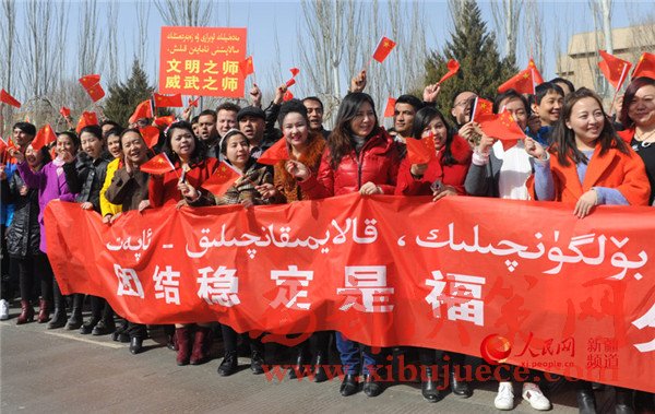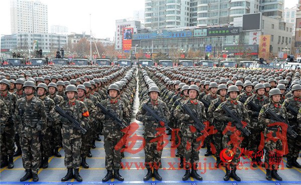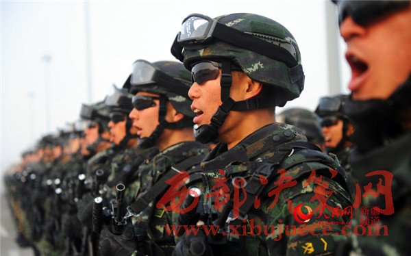 “聽黨指揮、能打勝仗、作風優(yōu)良!”參加誓師大會的全體維穩(wěn)力量聲震長空,有力宣示了全疆各族干部群眾堅定不移貫徹社會穩(wěn)定和長治久安總目標的堅定決心,展示了各維穩(wěn)力量忠誠勇敢、無堅不摧、敢打必勝的強大戰(zhàn)斗力,彰顯出新疆各族人民同仇敵愾、堅決戰(zhàn)勝暴恐分子的共同意愿。