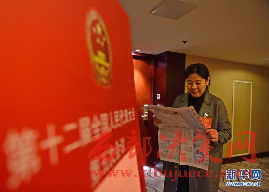3月6日,尹清在駐地閱讀報紙,關注兩會新聞。當了23年教師的全國人大代表、遼寧省丹東市朝鮮族中學校長尹清,在今年兩會前花了一個多月時間,跑了丹東市的5所中小學,向十幾位校長和老師取經,最終轉化為一份即將提交的建議:建立校園周邊安全綜合治理體系。尹清說:“為了寫好這份建議,我一直在請教代表團里的其他代表,讓他們出謀劃策,就是希望建議更有針對性、可行性,履行好一名代表的職責。”