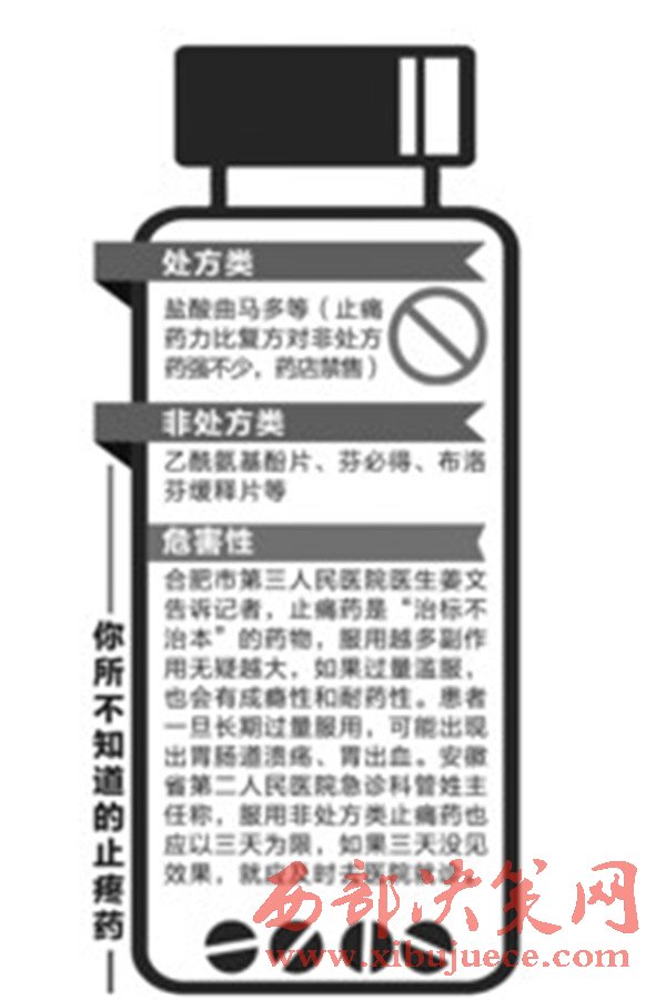 得知小唐曾吃過“鹽酸曲馬多”這一類強(qiáng)效的非麻醉性中樞鎮(zhèn)痛藥,姜文稱,該藥是處方藥,必須由必須憑執(zhí)業(yè)醫(yī)師或執(zhí)業(yè)助理醫(yī)師處方才可調(diào)配、購買和使用,藥店禁售。昨天下午,記者走訪了省城東二環(huán)路、巢湖南路、和平路等路段6家藥房,發(fā)現(xiàn)6家藥房均未售鹽酸曲馬多這種處方藥。“你要是偏頭痛,可以服用復(fù)方對乙酰氨基酚片。”在東二環(huán)路一家藥房,一名女營業(yè)員拿出一盒該藥品告訴記者,“這種止痛藥藥性也不差,如果你吃了幾片感覺不管用,可以多吃些,感覺到止痛了停服就行。”和平路一家藥房,營業(yè)員稱患者因人而異,既然只是止痛,沒有必要嚴(yán)格按照藥盒上的醫(yī)囑服用。