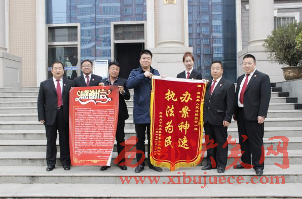 西部決策網(wǎng)訊(帥華鋒 劉恒)3月20日上午,鳳翔大千汽車租賃有限公司總經(jīng)理王某專程送來 “辦案神速 執(zhí)法為民”的錦旗與感謝信,向鳳翔法院執(zhí)行一庭干警王宏斌及執(zhí)行局全體干警表達謝意,感謝他們在辦案中不辭辛苦,公正執(zhí)法,有力的維護了當(dāng)事人合法權(quán)益。