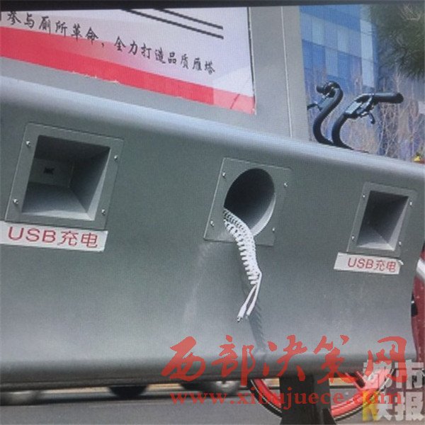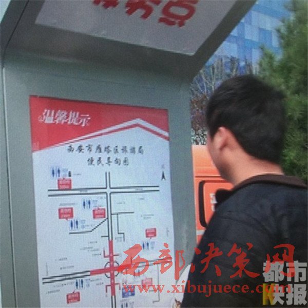 西安小寨街頭出現(xiàn)便民導廁神器,還能給手機充電。