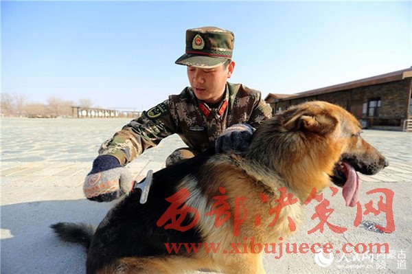 隨著天氣轉(zhuǎn)暖,警犬開(kāi)始換毛,訓(xùn)導(dǎo)員每天要給警犬梳毛。