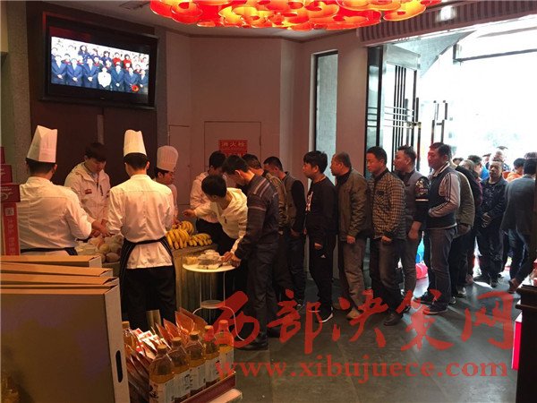 在現(xiàn)場(chǎng)記者看到,旺順閣魚(yú)頭泡餅門(mén)口工作人員指引的士司機(jī)們到指定車(chē)位,兩邊迎賓工作人員熱情接待每位到來(lái)的賓客。陸續(xù)到達(dá)的出租車(chē)已有近百輛,有序的一字排開(kāi),個(gè)個(gè)的哥臉上洋溢著燦爛的笑容,暢談寒暄,快樂(lè)的等待著。中午12時(shí),旺順閣魚(yú)頭泡餅西安財(cái)富中心店總經(jīng)理呂貴朋女士宣布活動(dòng)正式開(kāi)始。