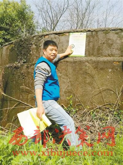 毛建偉在湘潭法華山張貼愛鳥宣傳海報。
