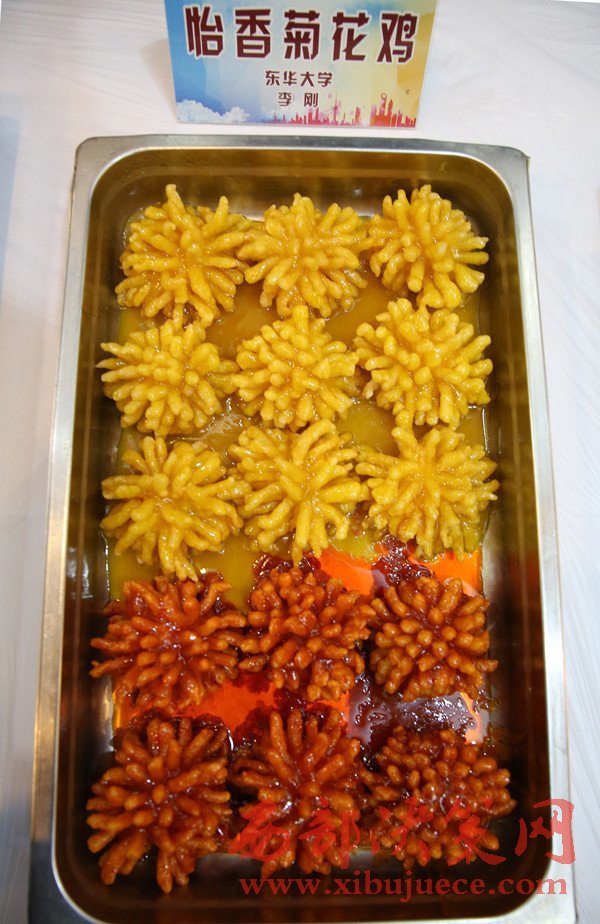 “中國第九大菜系”食堂菜的菜譜里,一天之內(nèi)多出了上百個(gè)新成員。11月12日,一場上海高校食堂間的“創(chuàng)新菜”比賽在上海大學(xué)寶山校區(qū)舉行。東華大學(xué)食堂借鑒“菊花魚”,推出了一道“怡香菊花雞”,也引起了現(xiàn)場的熱議,最終斬獲禽菜類前十名。