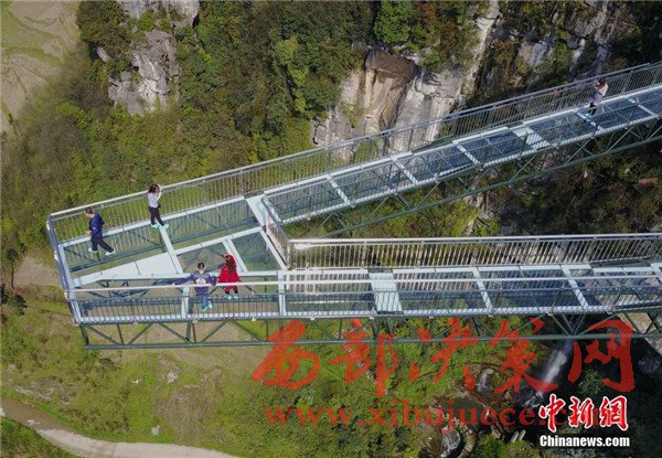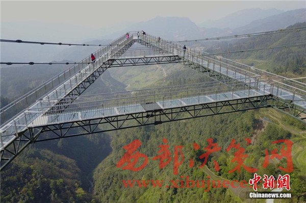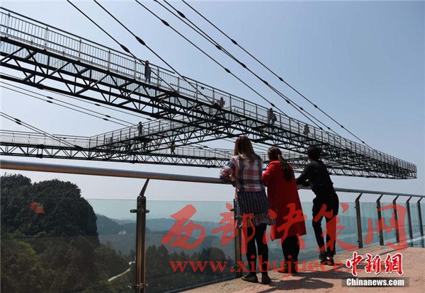 4月6日,重慶一景區(qū)內(nèi)“天空懸廊”吸引眾多市民前往體驗。懸廊成“A”字形,橋面鋪設全透明玻璃,由于懸空于近300米高的懸崖峭壁之上,又沿懸崖向外延伸在80米的空中,因此取名為“天空懸廊”。相比美國科羅拉多觀景廊橋向外懸挑21米,天空懸廊向外懸挑80米更為驚險刺激。目前,該項目正在申請吉尼斯世界紀錄。