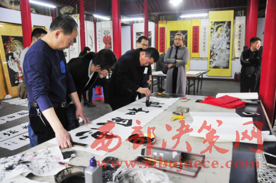 西部決策網(wǎng)-西部大開(kāi)發(fā)訊(胡玉敏 通訊員 李海其 胡玉軍)4月13日下午,河北省邢臺(tái)市橋西區(qū)知聯(lián)會(huì)、邢臺(tái)市橋西區(qū)政協(xié)第三委員小組,在紫金公園聚義廳開(kāi)展了書(shū)法文化交流活動(dòng)?;顒?dòng)特邀我市知名書(shū)畫(huà)家現(xiàn)場(chǎng)揮毫潑墨,切磋書(shū)畫(huà)技藝,創(chuàng)作作品20余幅。民盟市委副主委付曉婭,橋西區(qū)政協(xié)主席張建波、區(qū)政協(xié)副主席趙振群、王之良等領(lǐng)導(dǎo)應(yīng)邀參加。