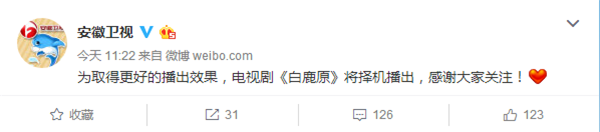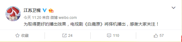 很多守在電視機(jī)前準(zhǔn)備看《白鹿原》的觀眾都撲空了,江蘇衛(wèi)視和安徽衛(wèi)視原計(jì)劃播放第2集的時(shí)間卻各自播放了其他內(nèi)容,但兩方都未對(duì)《白鹿原》停播作出解釋。就在今日,兩家衛(wèi)視都官方發(fā)表聲明表示,“為取得更好的播出效果,電視劇《白鹿原》將擇機(jī)播出,感謝大家關(guān)注!”