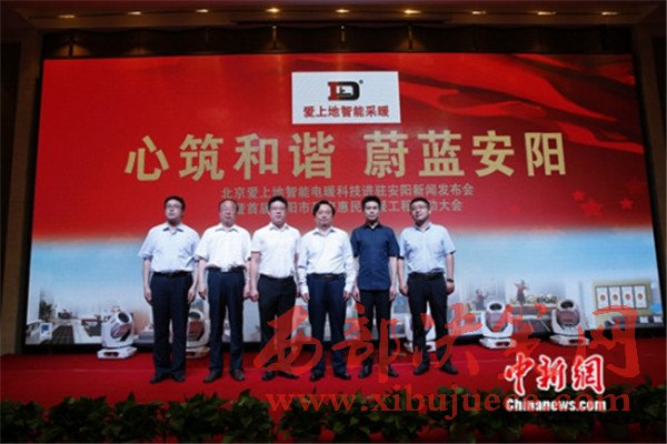 近日,北京愛上地智能電暖科技進(jìn)駐安陽新聞發(fā)布會(huì)在安陽舉辦,本次發(fā)布會(huì)主題為——“心筑和諧蔚藍(lán)安陽”,旨在通過加快推進(jìn)清潔取暖,讓民心更暖天更藍(lán)。安陽市人民政府副市長(zhǎng)田海濤、安陽市殷都區(qū)委常委、常務(wù)副區(qū)長(zhǎng)馬衛(wèi)、殷都區(qū)商務(wù)局局長(zhǎng)李昳嫻、北京愛上地科技有限公司董事長(zhǎng)叢建光參加了發(fā)布會(huì)。