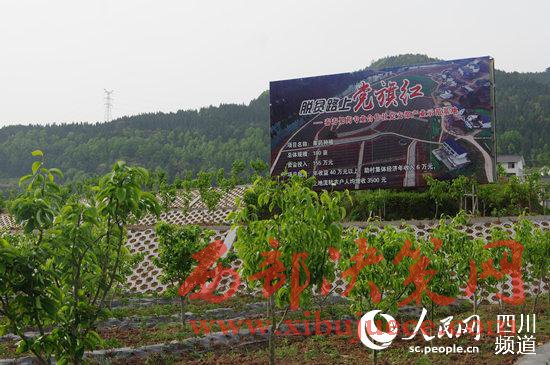 四川省巴中市巴州區(qū)曾口鎮(zhèn)秧田溝村黨支部產(chǎn)業(yè)示范基地內(nèi)樹(shù)立起“脫貧路上黨旗紅”的牌子。