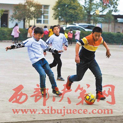 這是四川省綿陽市安州區(qū)迎新鄉(xiāng)唯一的小學(xué)——迎新小學(xué)足球場上的一幕。所謂的足球場,不過是一塊籃球場大小的水泥地操場。由于人口稀少、位置偏遠(yuǎn),迎新鄉(xiāng)是安州區(qū)唯一一個(gè)不趕集的鄉(xiāng)鎮(zhèn)。迎新小學(xué)300多名在校生,留守兒童占七成以上。